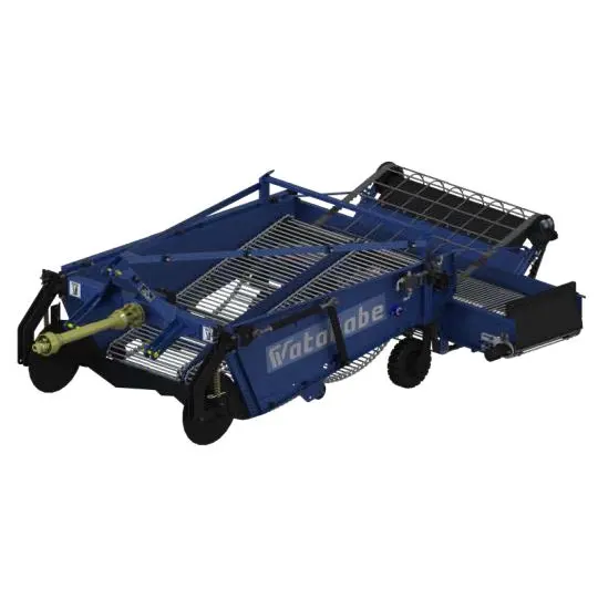 환영합니다 인도 와타나베 토양 안정제 주식회사, 귀하의 인증 인도 제조업체 고효율 분야의 최고 전문가 감자 파는 기계 장비. AWB-1600 C 2 ROWS Potato Digger is the absolute pinnacle of stability and separation capability in its class. Weighing a formidable 1350kg—the heaviest 2-row model in our lineup—and requiring a minimum power input of 95 CV, the AWB-1600 C is engineered for the most difficult harvest conditions, including heavy, sticky soil, high vine/weed content, and uneven terrain. This structural mass, coupled with specialized multi-stage separation features, guarantees the highest recovery rate and lowest 괴경 손상 while operating at the controlled 3-5km/h 작업 속도.